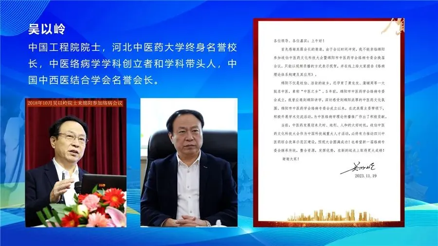 中国工程院院士吴以岭、国医大师萧承悰向大会致信祝贺。