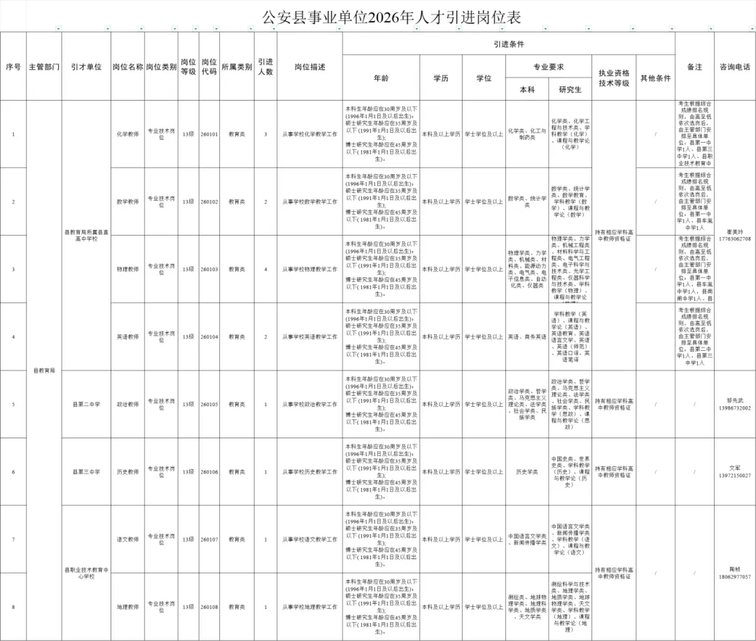 2.岗位要求中“应届毕业生”是指国家统一招生且就读期间个人档案、组织关系保管在就读院校的2024年、2025年、2026年普通高校毕业生;