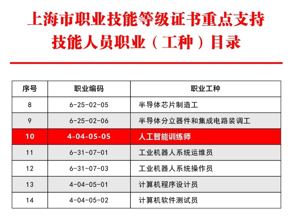 2020年2月,人力资源和社会保障部发布了未来紧需的一些新职业,人工智能训练师名列其中,并纳入国家职业分类目录;据悉目前AI领域人才缺口预计在500万左右,AI人才抢夺比较激烈。当前人工智能训练师不仅是较佳的就业选择,2025年还被列入上海市重点支持技能人员职业(工种)目录,另外还可享受政府补贴、上海居住证积分加60分等政策福利。