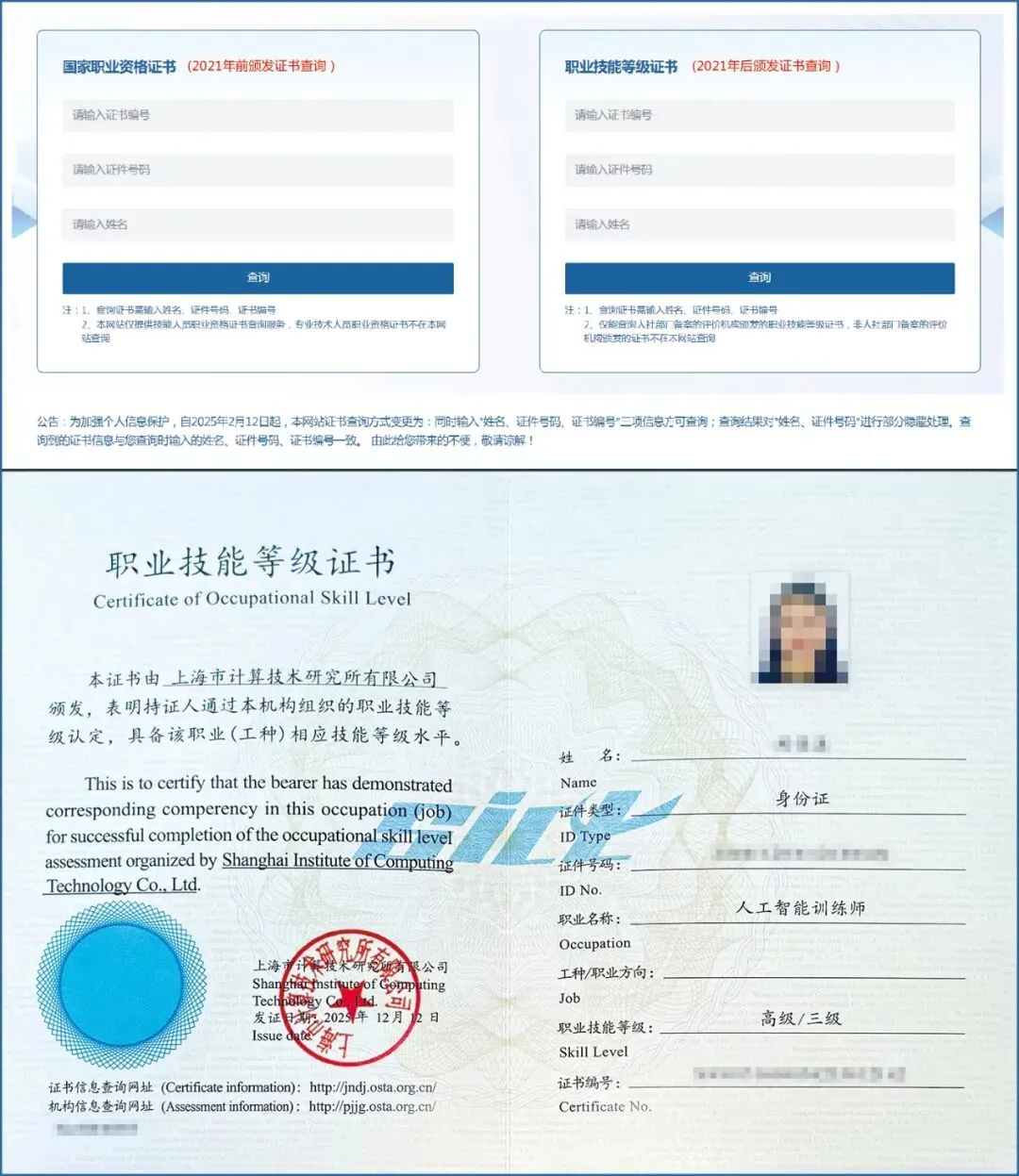 证书查询:上海市人力资源和社会保障局、国家人力资源和社会保障部:技能人才评价证书全国联网查询,