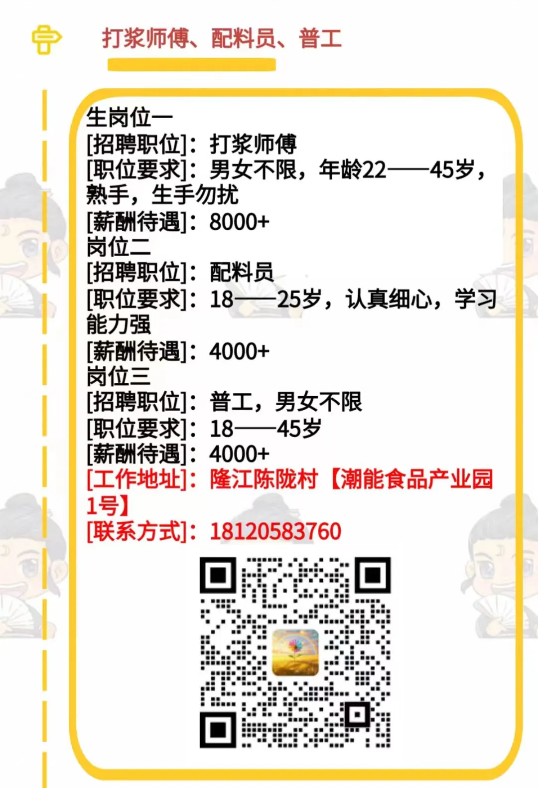 1.22 惠来招聘已更新(新招男普工多名、打浆师傅、配料员、普工、隆江招发型师/助理/美甲师长期/临时都可以!男女不限...)