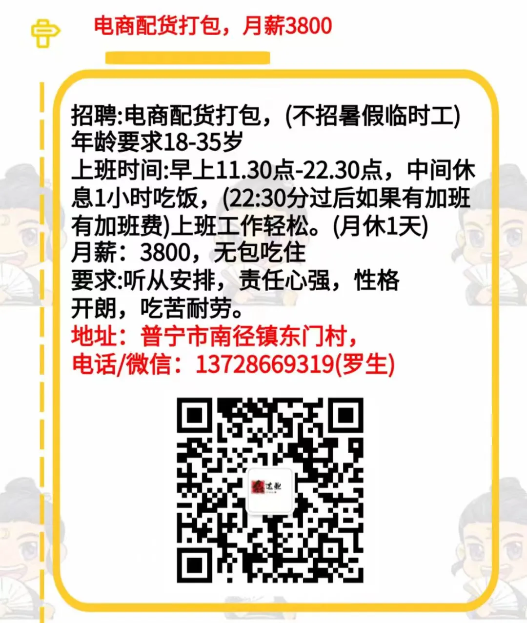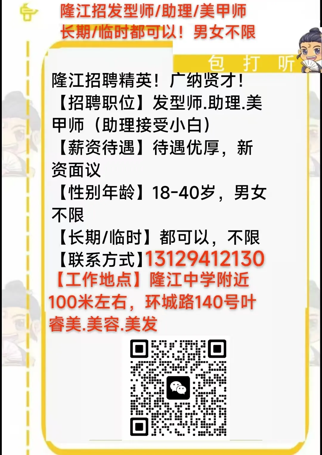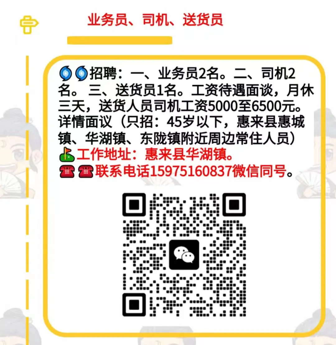 >1.22 惠来招聘已更新(新招男普工多名、打浆师傅、配料员、普工、隆江招发型师/助理/美甲师长期/临时都可以!男女不限...)