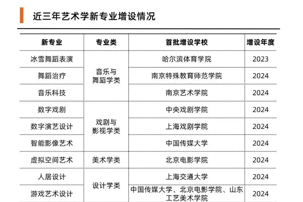 而今年首次进入本科专业目录的8个艺术类新专业,也体现出艺术与数字、科技的紧密结合,且带有十分鲜明的市场需求导向。