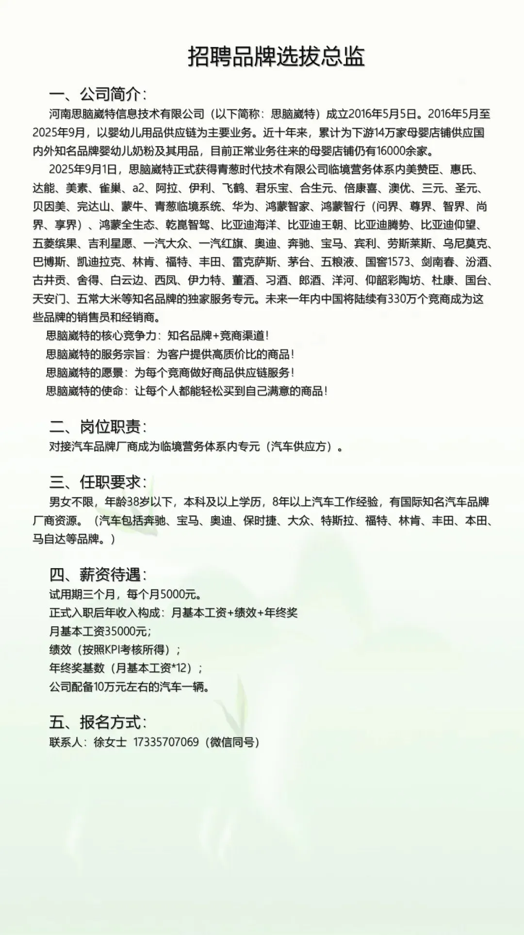 >河南思脑崴特信息技术有限公司2026年人才招募方案