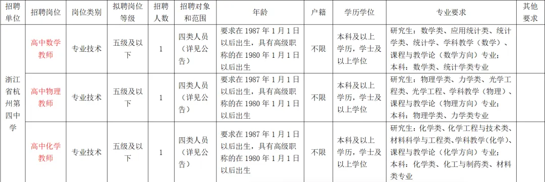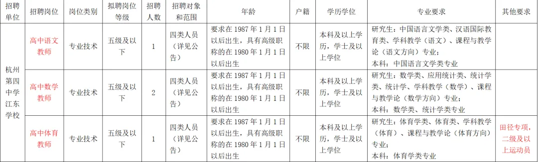 (三)招聘对象、招聘条件、报名等相关要求详见杭州市教育局所属事业单位2026年1月批次招聘公告