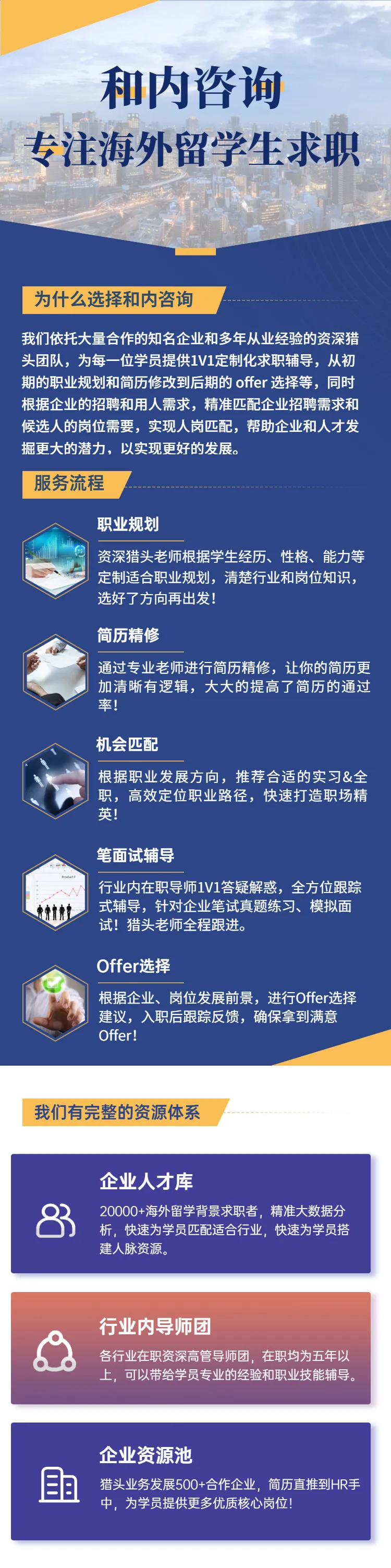 *文章由和内咨询整理发布,我们致力于优秀求职干货文章的交流分享,若涉及版权问题,请联系微信:J2457081166