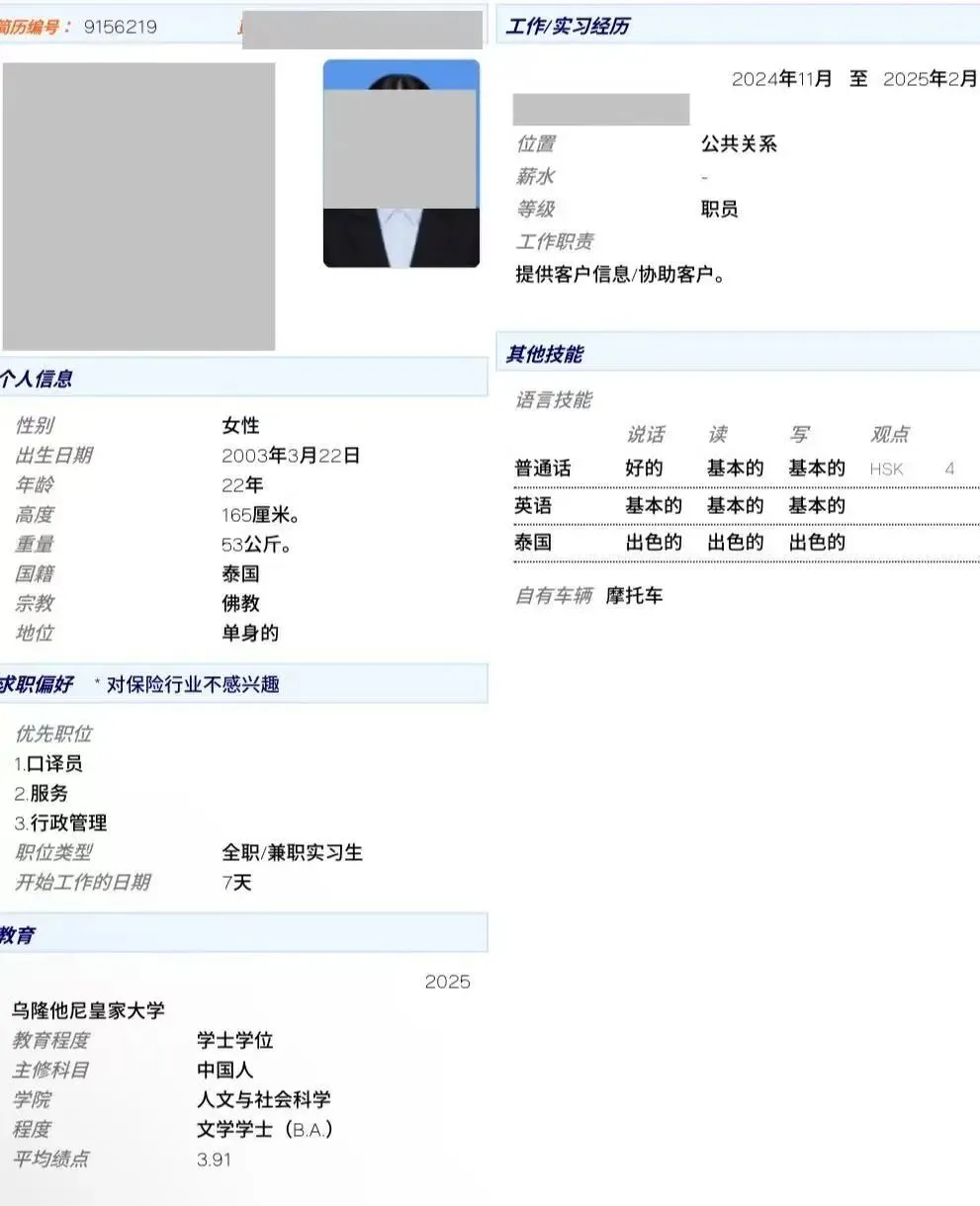 【泰籍人才@曼谷】中/泰/英三语+1年公共关系工作经验+HSK4级#260122