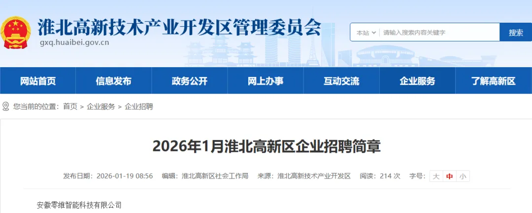 最新!淮北高新区招聘!