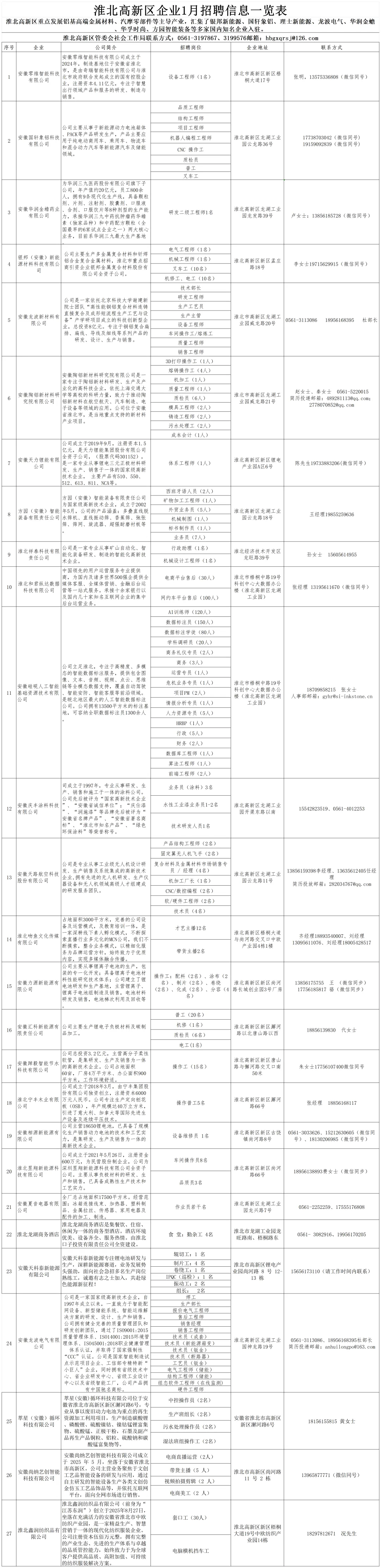 1月淮北高新区企业