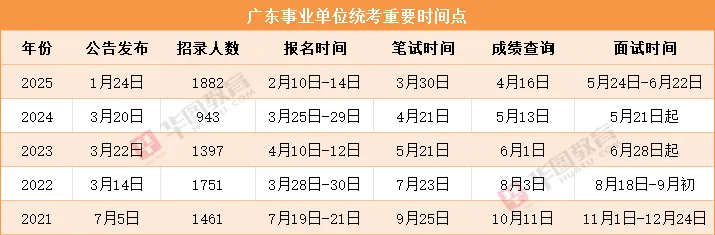 从往年公告发布时间来说,2025年广东事业单位统考在1月24号出公告,3月份笔试,是跟全国事业单位联考笔试时间重叠的。出公告到笔试时间大概是一个多月,那么2026广东统考,大概率会和全国事业单位联考时间撞在一起。