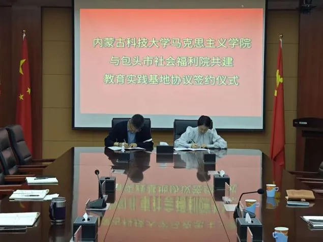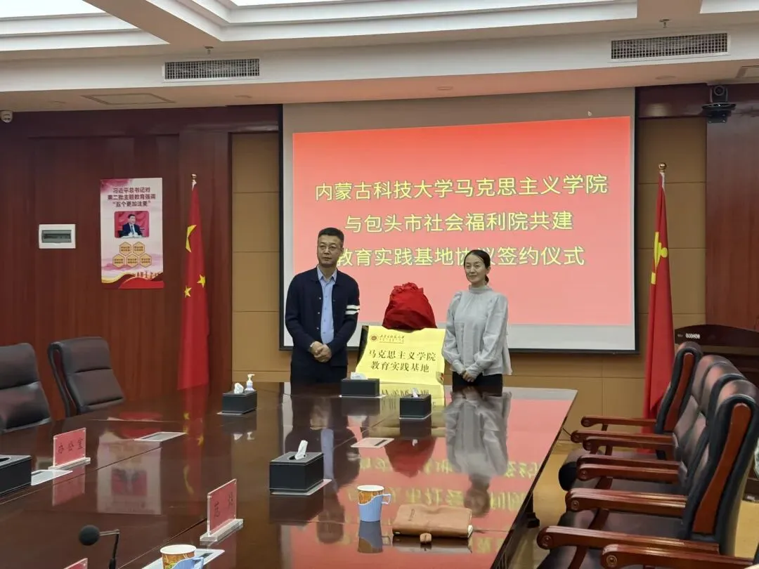 2026年1月16日,内蒙古科技大学马克思主义学院与包头市社会福利院共建教育实践基地协议签约仪式在包头市社会福利院隆重举行。内蒙古科技大学马克思主义学院党委副书记兼副院长贾磊、副院长杨哲、团委书记范炜、思政系主任李嘉伟,包头市社会福利院党委书记、院长温伟、副院长李升媛共同出席仪式,并就建设教育实践基地及进一步加强校地合作开展了座谈交流。此次协议的签署标志着双方在人才培养、社会服务、专业实践等领域的深度合作正式启动,为马克思主义理论专业人才培养与边疆地区民生福利事业高质量发展注入新动能。