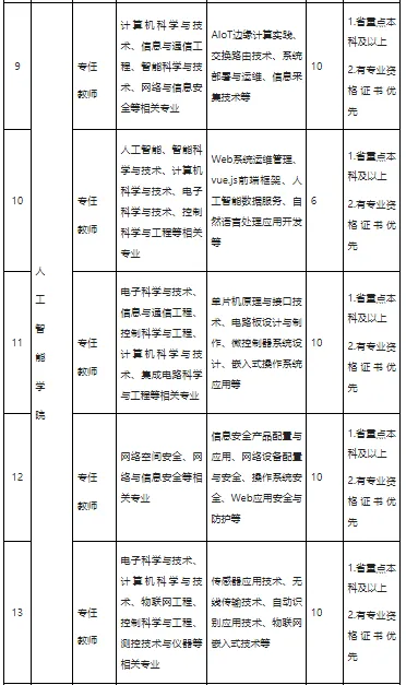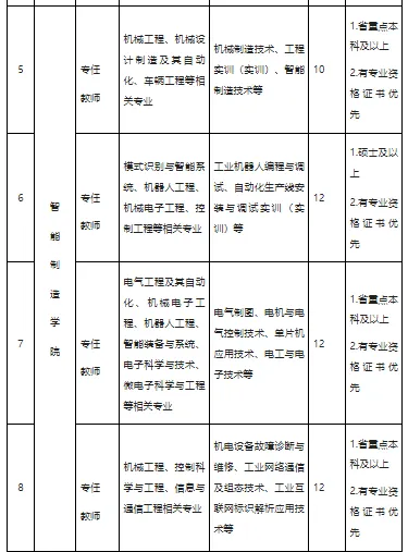 (1)热爱教育事业,身心健康,具有良好思想政治素质及职业道德。(2)具有中级以上职称、高职教学经历、教育背景优良者优先。(3)能胜任教学和科研工作,符合体检标准(具体参照《公务员录用体检通用标准及操作手册(试行)》和规程等有关文件执行)。(1)省重点本科及以上,所学专业在学校开设专业和课程范围内。(2)具有相关专业技能证书、高职教学经历、教育背景优良者优先。(3)能胜任教学和科研工作,符合体检标准(具体参照《公务员录用体检通用标准及操作手册(试行)》和规程等有关文件执行)。硕士月薪6-8k,按照国家法律和有关规定顶格缴纳“五险一金”,享受节日慰问金、学校餐费补贴等福利,学校为外地教职工提供教师公寓。本科月薪5-7k,按照国家法律和有关规定顶格缴纳“五险一金”,享受节日慰问金、学校餐费补贴等福利,学校为外地教职工提供教师公寓。薪资福利待遇面议,特殊人才“一人一议”。按照国家法律和有关规定顶格缴纳“五险一金”,享受节日慰问金、学校餐费补贴等福利,学校为外地教职工提供教师公寓。2、本科、硕士毕业证、学位证;专业技术职务等证书原件扫描件;本科、硕士学信网学历注册备案表;无犯罪记录证明。3、科研项目、论文、论著及获奖情况等能证明自己水平或能力的材料。联系人: 刘老师 (0376)6998023 , 18530323925兰老师 (0376)6998059 , 17838968580信阳科技职业学院属民办全日制普通高等职业院校,校园占地面积575亩,总建筑面积42.8万平方米。2024年4月经河南省人民政府同意设立,5月经教育部办公厅予以备案,现有在校生4500余名。鲜明的办学定位。学校坚持社会主义办学方向,全面贯彻党的教育方针,落实立德树人根本任务,立足信阳,面向河南,辐射全国,坚持“质量立校、人才强校、特色兴校、法规治校”办学理念。先进的设施设备。学校拥有现代化的教学实训、体育运动后勤生活设施。已建成多媒体教室72间,校内外实习实训基地80余个,配备教学用计算机1500余台。建有标准人工草坪足球场、竞赛级塑胶跑道田径场、室外篮球场、排球场、羽毛球场、室内乒乓球馆等运动场地及设施。学校将根据办学规模和实际需要,持续推进校园建设,不断完善办学条件,稳步推进规划建设目标实现。科学的专业设置。学校紧密对接国家战略产业及河南“7+28+N”、信阳“6+11+N”产业布局,开设机电一体化技术、工业互联网应用、人工智能技术应用等11个专业,逐步构建以人工智能、智能制造为主,新一代电子信息技术、智慧电商等协调发展的专业体系,努力打造工科特色的现代化高水平高等职业院校,培养高端智能制造、人工智能应用、新一代信息技术、低空经济、新能源、现代服务业等方向的高素质技术技能型人才。突出的教学成果。学校持续加强以赛促学促教,师生在各类技能竞赛中屡获佳绩,获得第六届全国高校计算机能力挑战赛、2024一带一路暨金砖国家技能发展与技术创新大赛等各类国家竞赛奖项9项,省内各项奖项40余项,申报省厅级以上科研项目20余项,其中2025年河南省高等职业教育教学能力大赛实现突破,4个参赛教师团队全部获奖,荣获二等奖2项、三等奖2项。深度的校企合作。学校大力实施产教融合协同发展,推进与科大讯飞、亚龙智能、小米等头部企业合作共建人工智能现代产业学院、智能制造产业学院和低空经济产业学院,推动双元共育、产教融合,落地数据标注、AI语音录制、职业技能竞赛培训、无人机执照培训考证等真实生产型项目,被人工智能产教融合国际联盟授予智能制造领域产教融合创新奖。学校还与安钢集团信钢公司合作开设了“钢铁侠”订单班,与深圳讯方联合建设华为ICT学院,与杭萧钢构、信阳文新茶叶、宁波阿能集团、惠州TCL通力等企业共建校内外实习实训基地80余个。学校是全国丝路云商产教融合共同体副理事长单位,河南省电子与信息行业产教融合共同体副理事长单位,信阳市域产教联合体、小米通讯科技有限公司新一代智能技术产教融合共同体成员。学校积极推动职教出海,是中北非国际教育创新联盟理事单位,并挂牌设立柬埔寨师资培训基地。未来,学校将以高质量发展为主线,不断加强办学条件支撑保障,持续提升教育教学能力和水平,努力实现“为学生赋能立身,创美好未来;为社会奉献人才,铸强国之基”的办学目标。