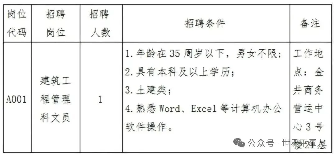 本次招聘共设1个岗位,具体招聘人数、任职要求详见下表: