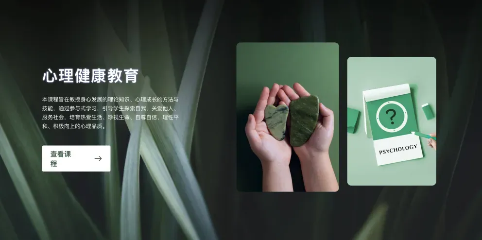 该课程面向本科一年级开设。课程目标是学生心理健康促进,提升生命价值感和赋能学生心灵成长。立足中国传统的文化叙事,AI协助共同学习,通过六个模块的线下团体课程和800分钟的线上学习资源,深耕基于中国文化的五级心理健康知识图谱,将心理健康知识传授、心理素质提升和价值观塑造相结合,五育融合,育心育德,提升学生的学习力、思想力、行动力。运用AI场景,提质增效,“教”与“学”双向促进,提振学生对生命的热爱、对学术的热情、对社会的关怀,涵育坚韧不拔的心理品质和积极向上的社会心态。