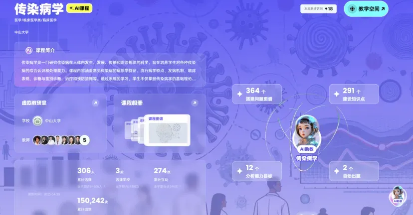 人工智能技术赋能课程为通过人工智能技术重构课程内容、优化教学方法、创新评价体系,以提升教学效率、个性化学习体验和跨学科应用能力的课程模式。2025年,学校立项支持85门人工智能技术赋能课程建设,如《心理健康教育》《生物医学概论》等,这些课程深度融合人工智能技术,以AI技术赋能教与学。