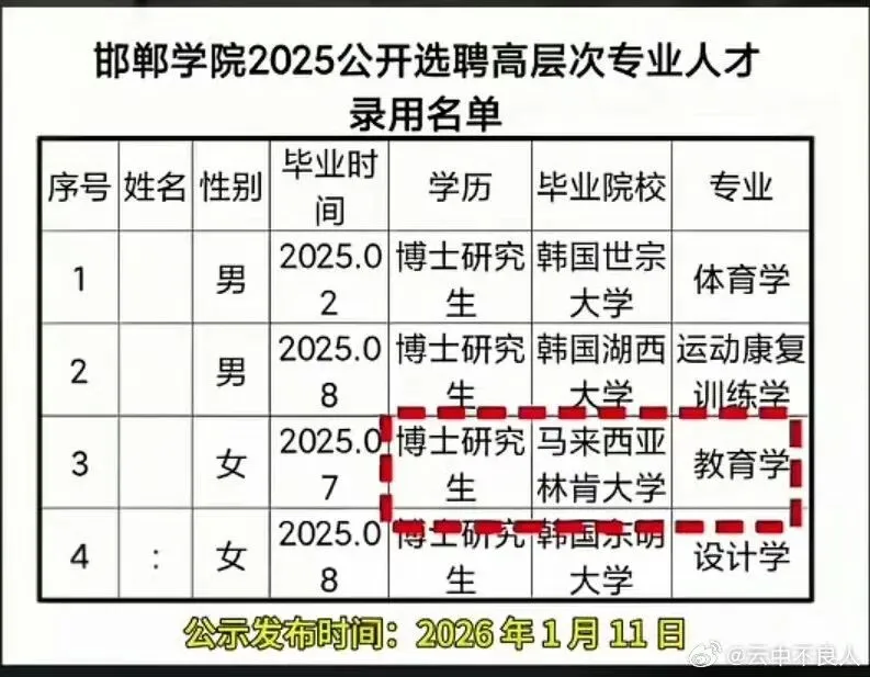 但意外的是,就是这样几所距离野鸡大学只差了一点点距离的不入流学校的博士,居然在邯郸学院眼中,成了炙手可热的高层次人才,真的让人百思不得其解。