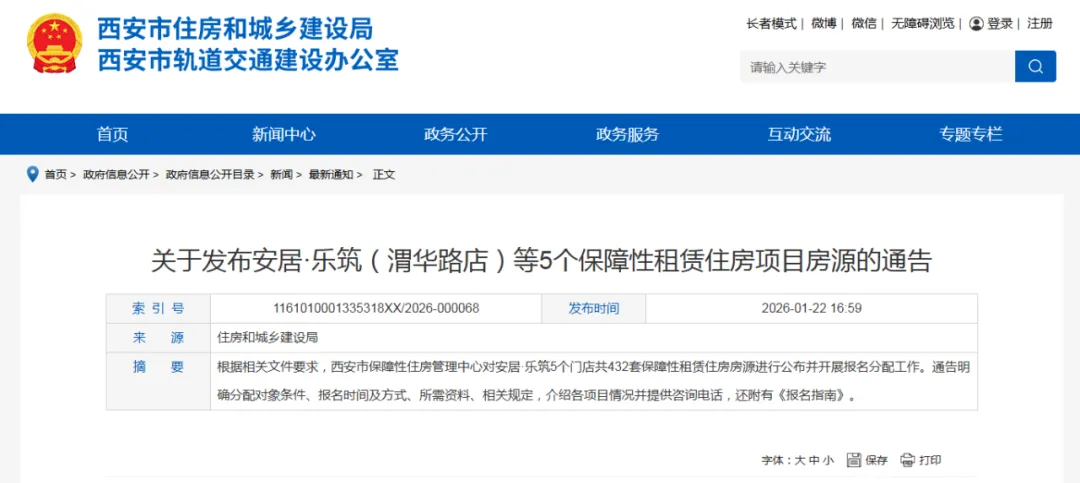 根据《西安市人民政府办公厅关于加快发展保障性租赁住房的实施意见》《西安市保障性租赁住房资格审核及分配暂行规定》《西安市住房保障工作领导小组办公室关于做好应届毕业生申请保障性租赁住房“优先选房”工作的通知》等文件精神要求,我中心对安居·乐筑(渭华路店)44套房源、安居·乐筑(航空三路店)38套房源、安居·乐筑(红旗路店)53套房源、安居·乐筑(清凉山店)90套房源、安居·乐筑(雁鸣湖店)207套房源,共计432套房源进行公布,开始报名分配工作。为确保分配工作的公平、公正、公开,现将具体情况通告如下: