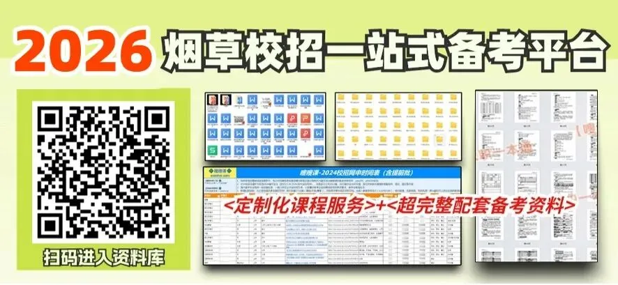 回复关键词:“烟草课程”,购买2026最新烟草笔试面试基础精讲课、提升课、直播课。