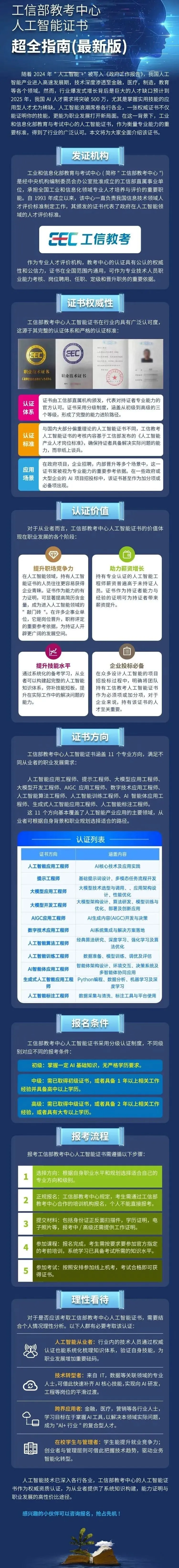 🔥🔥🔥工信部教育与考试中心★AIGC人工智能认证火热报考中★☑ 正规考培 ☑ 全国通用☑ 官网可查 ☑ 快速办理【报名】+【全程助考】+【拿证】☑ 一站式解决!早报名!早考试!早拿证!《往期全国线下AI实战训练营剪影回顾》《往期全国统考剪影回顾》↓全国企业业务合作内容与服务体系↓↓全国企业业务合作服务模式↓《往期知名企业员工报名参加考试获取官方证书》· · · · · 为国育才,引领未来!· · · · ·