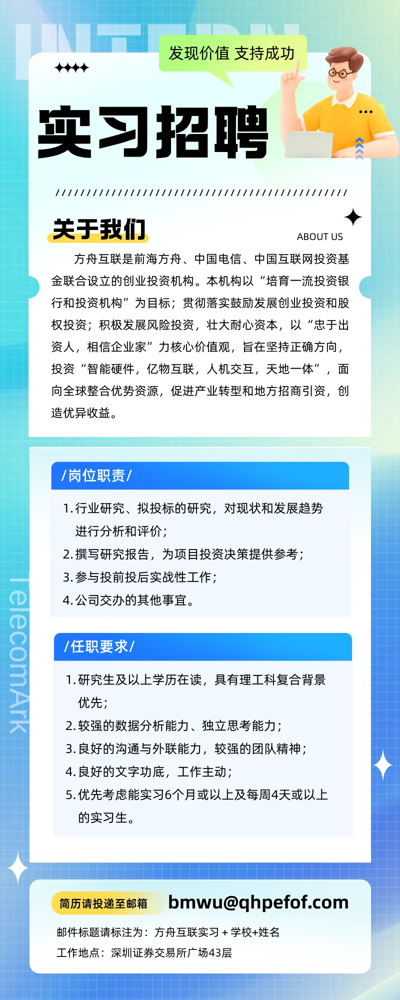 【深圳招聘】方舟互联(深圳)私募股权基金管理合伙企业招聘实习生!报名已开启,有意者速来~