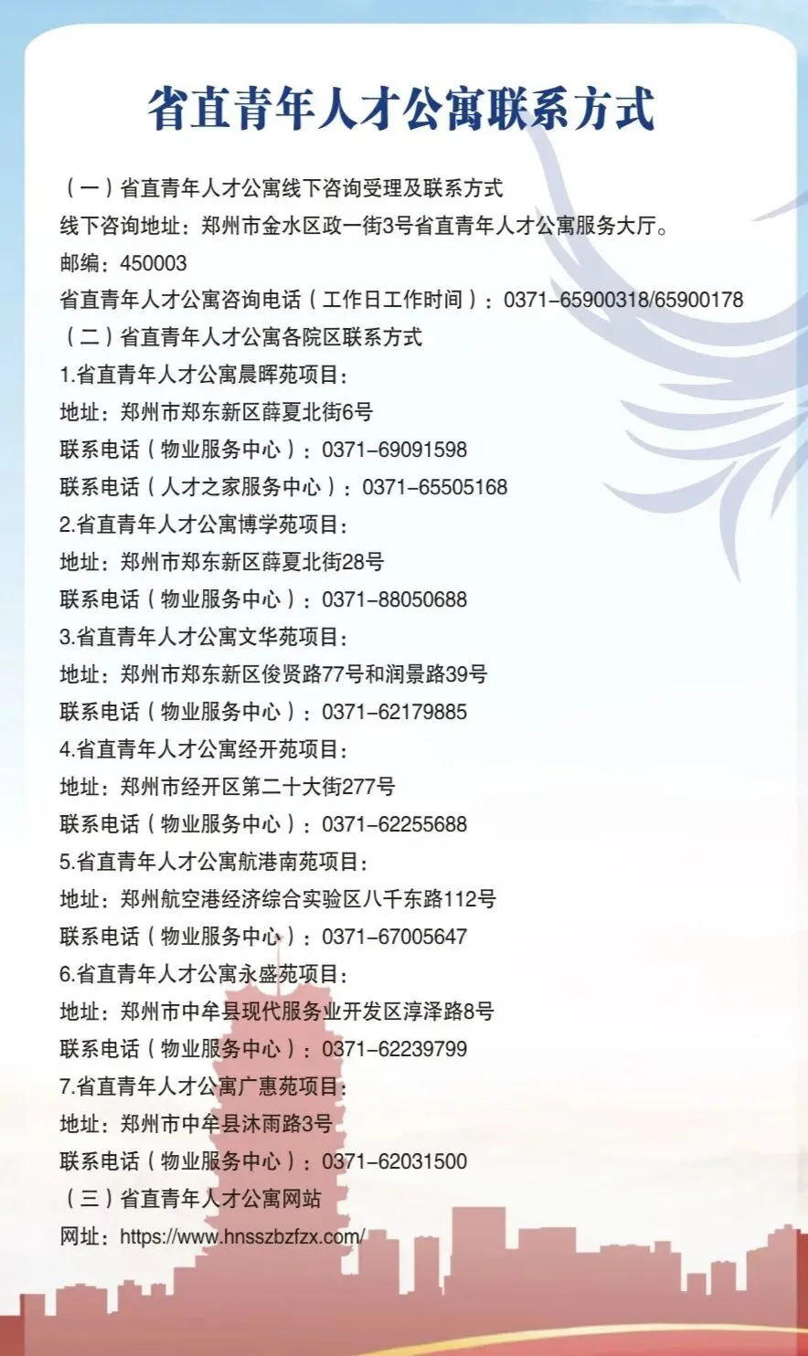全省规划建设10万套青年人才公寓,其中省直板块规划2.5万套,实际布局10个项目,遍布郑东新区龙子湖组团、白沙组团、中牟绿博组团、金水科教园区、经开区及航空港区等黄金地段。