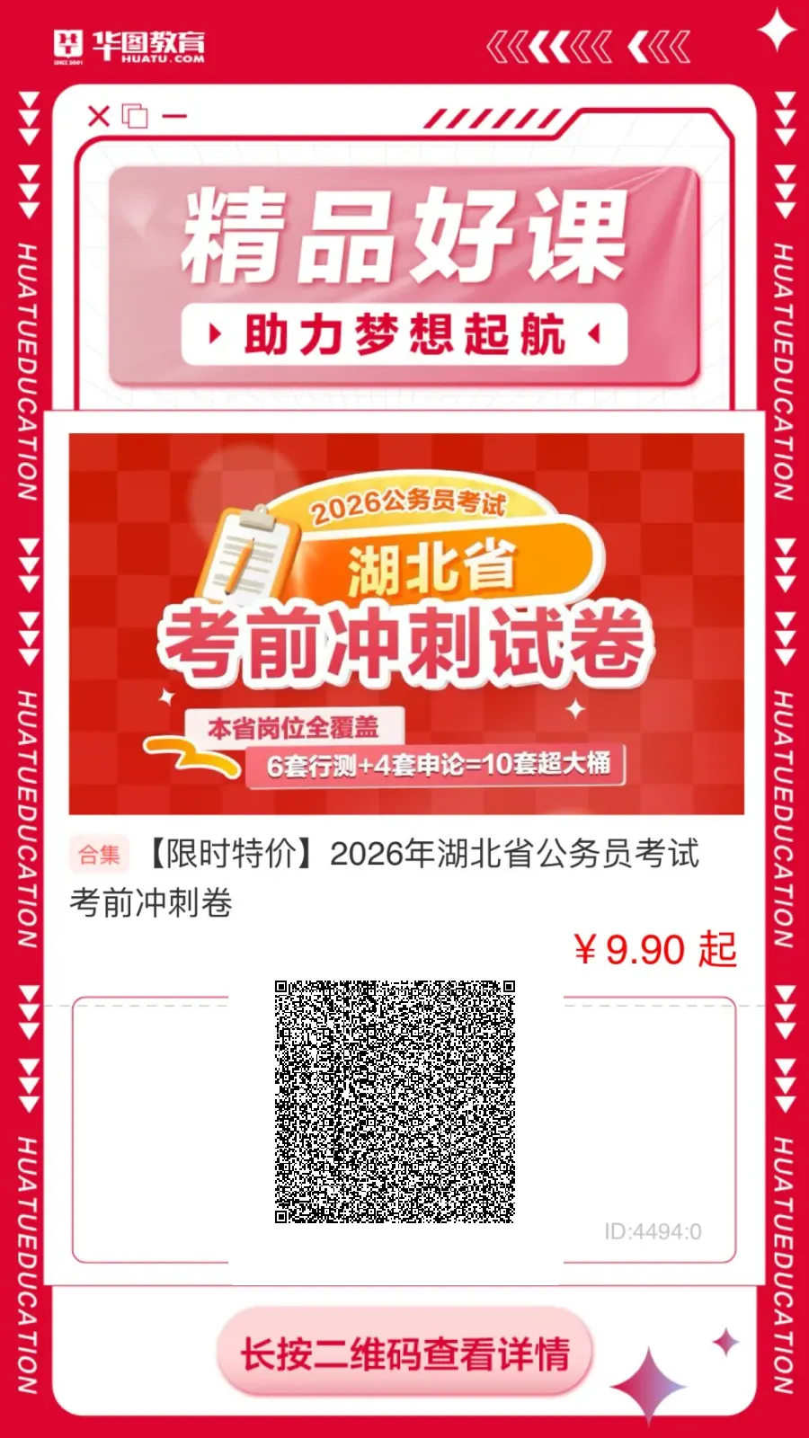 🎯2026湖北省考考前冲刺卷限时优惠👉售价:首发限时9.9元,三折限时抢购