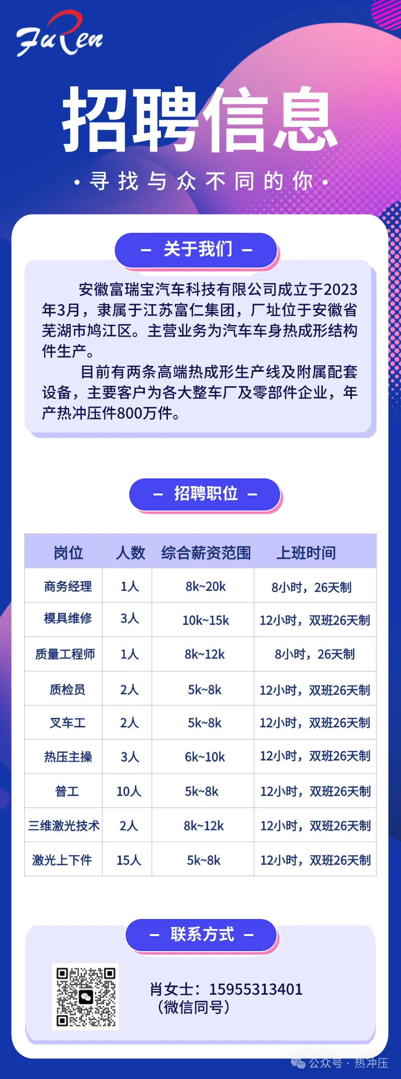 2.工作经验:汽车行业内同性质工作3年以上,同类型设备运维1年以上