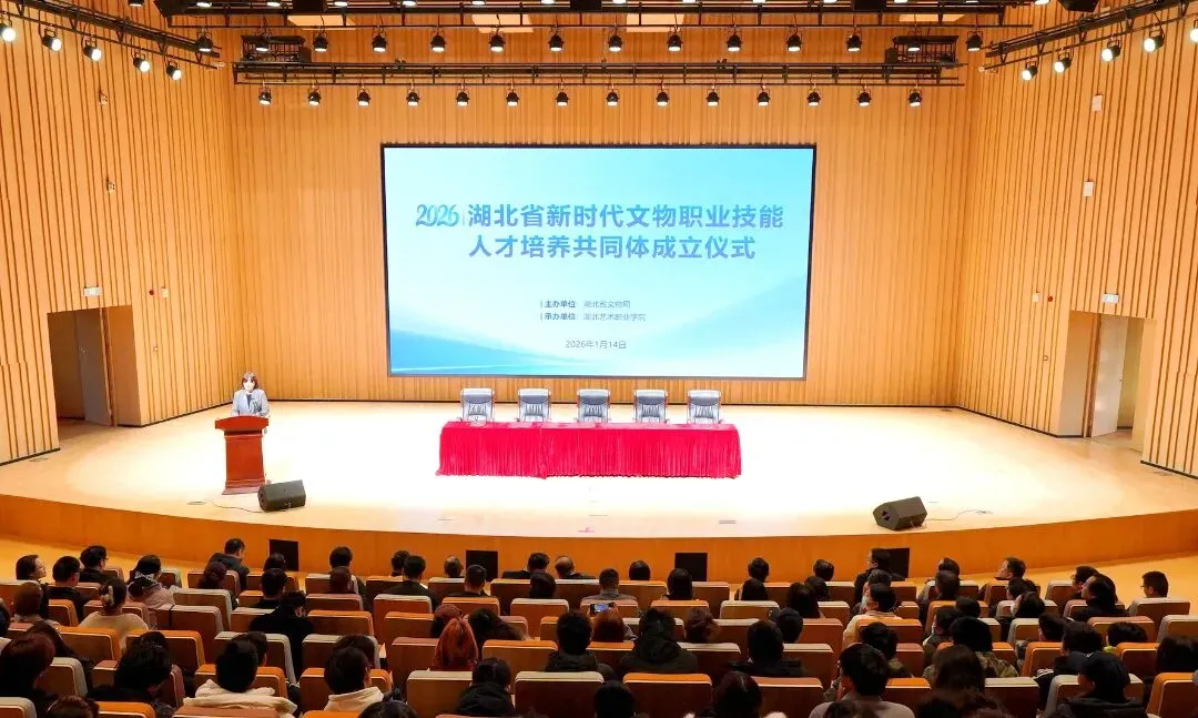 1月14日,由湖北省文物局主办、湖北艺术职业学院承办的“湖北省新时代文物职业技能人才培养共同体成立大会暨座谈会”在湖北艺术职业学院龙泉校区隆重举行。湖北省文旅厅党组成员、省文物局党组书记、局长陈飞,省文物局副局长朱祥德,全省重点文博机构及高校代表参加会议。天时公司作为唯一受邀企业代表,党支部书记、董事长赵征参会并分享文物保护工程职业技能人才培育实践经验。