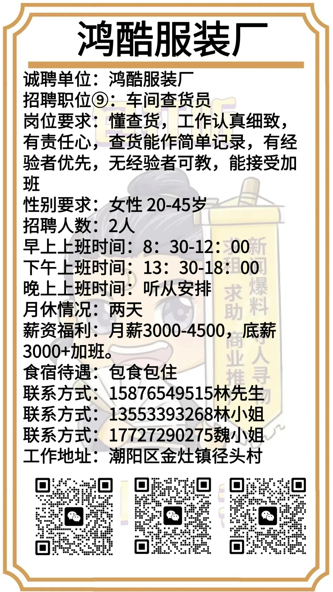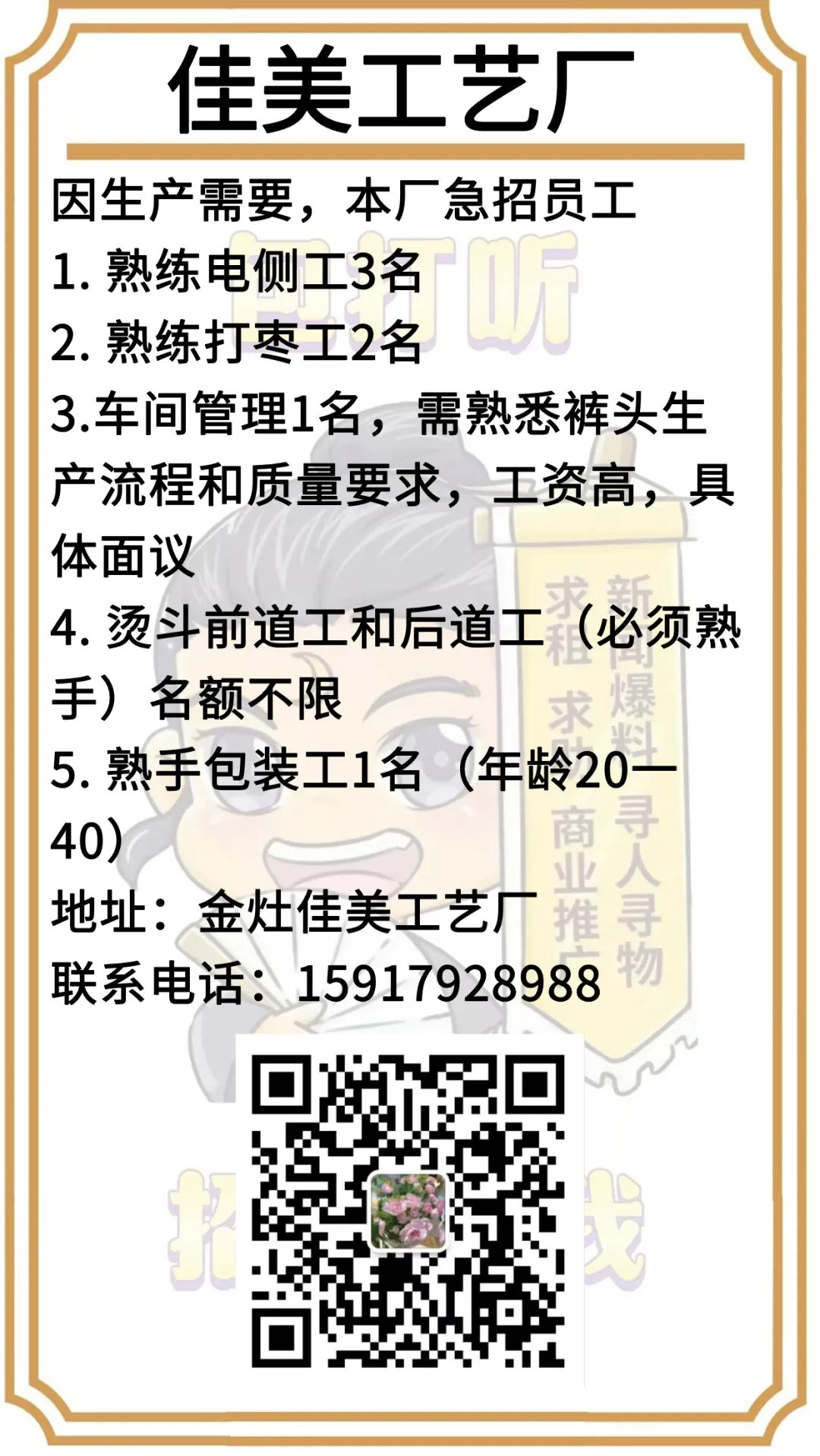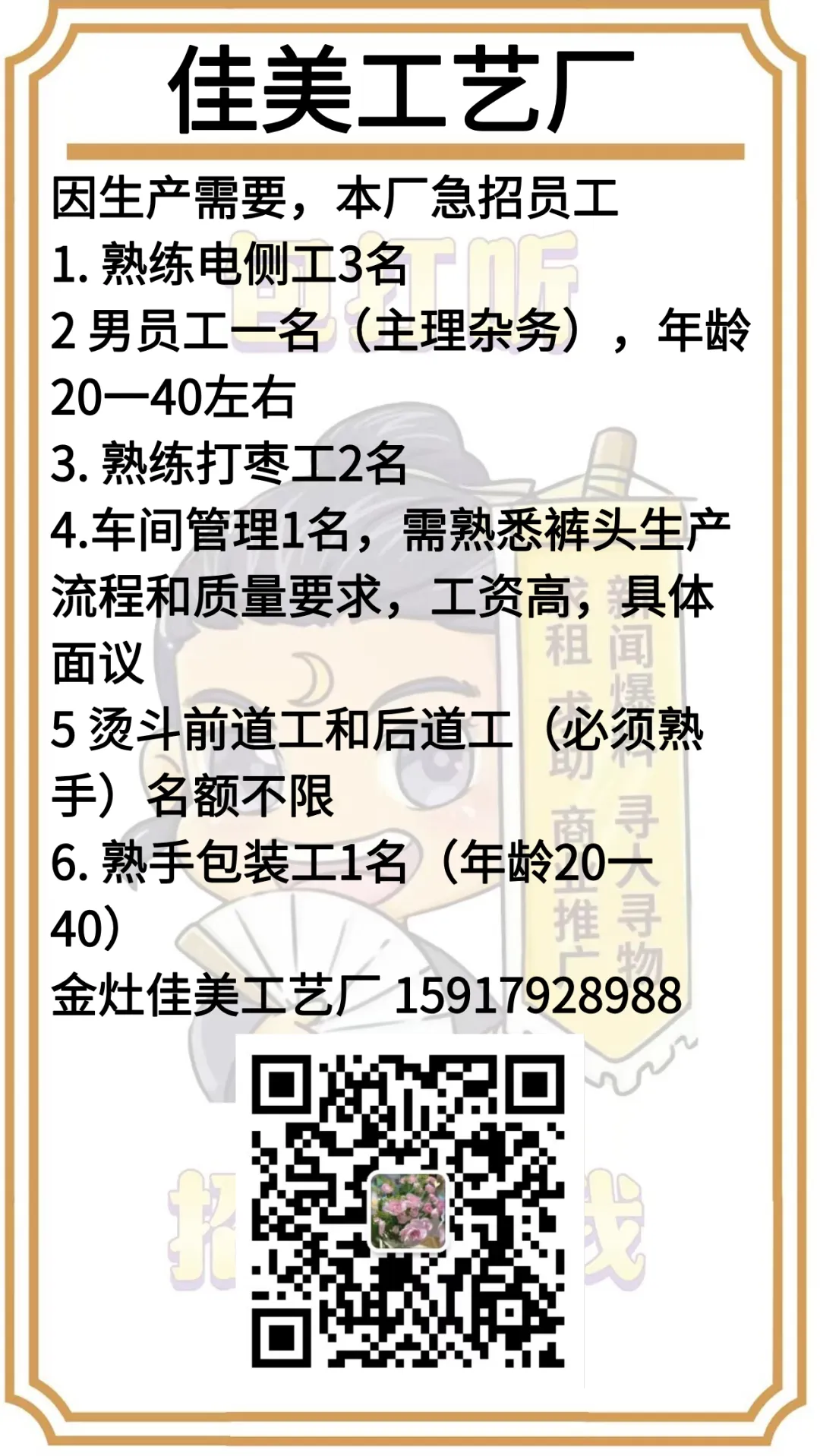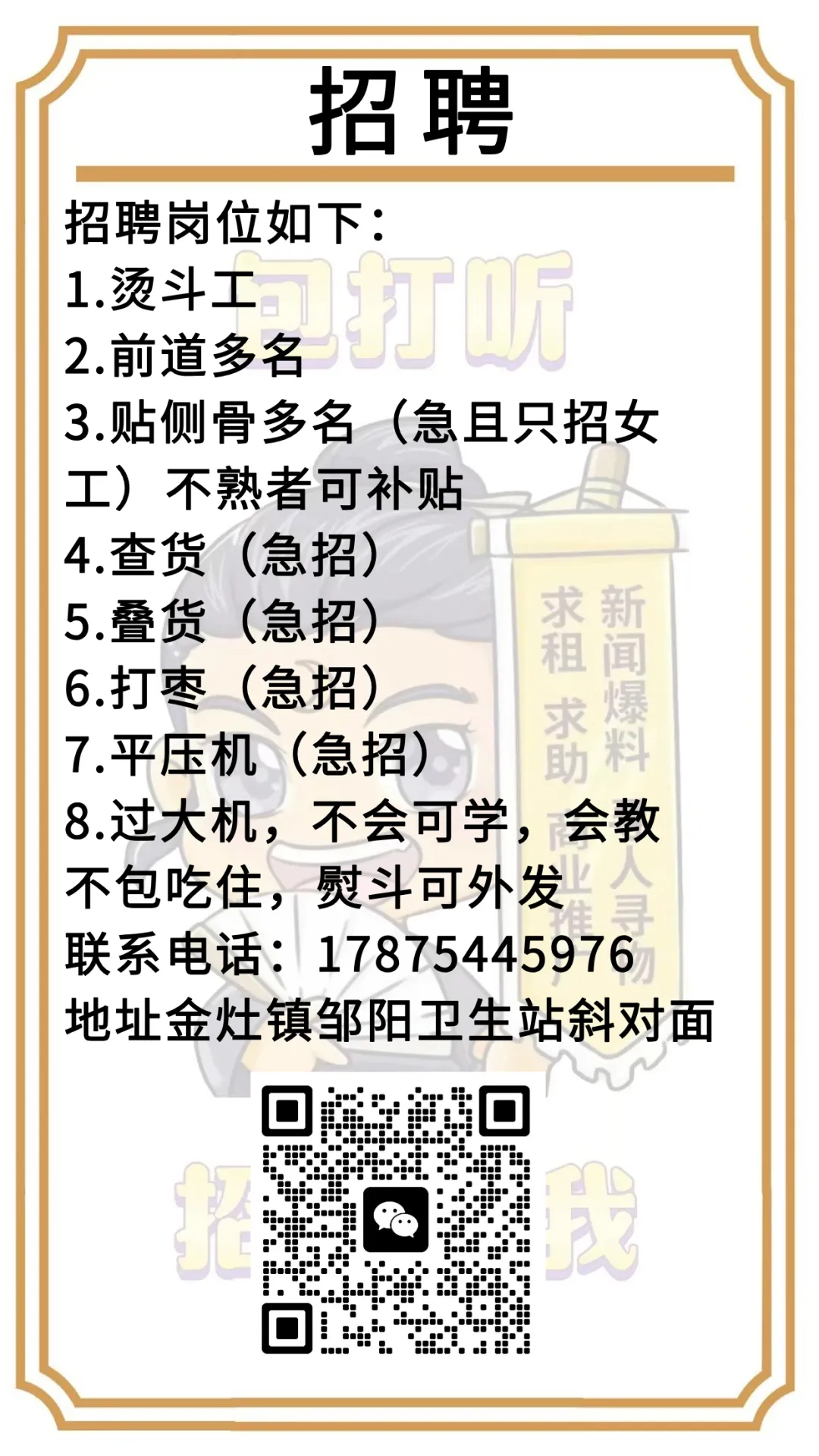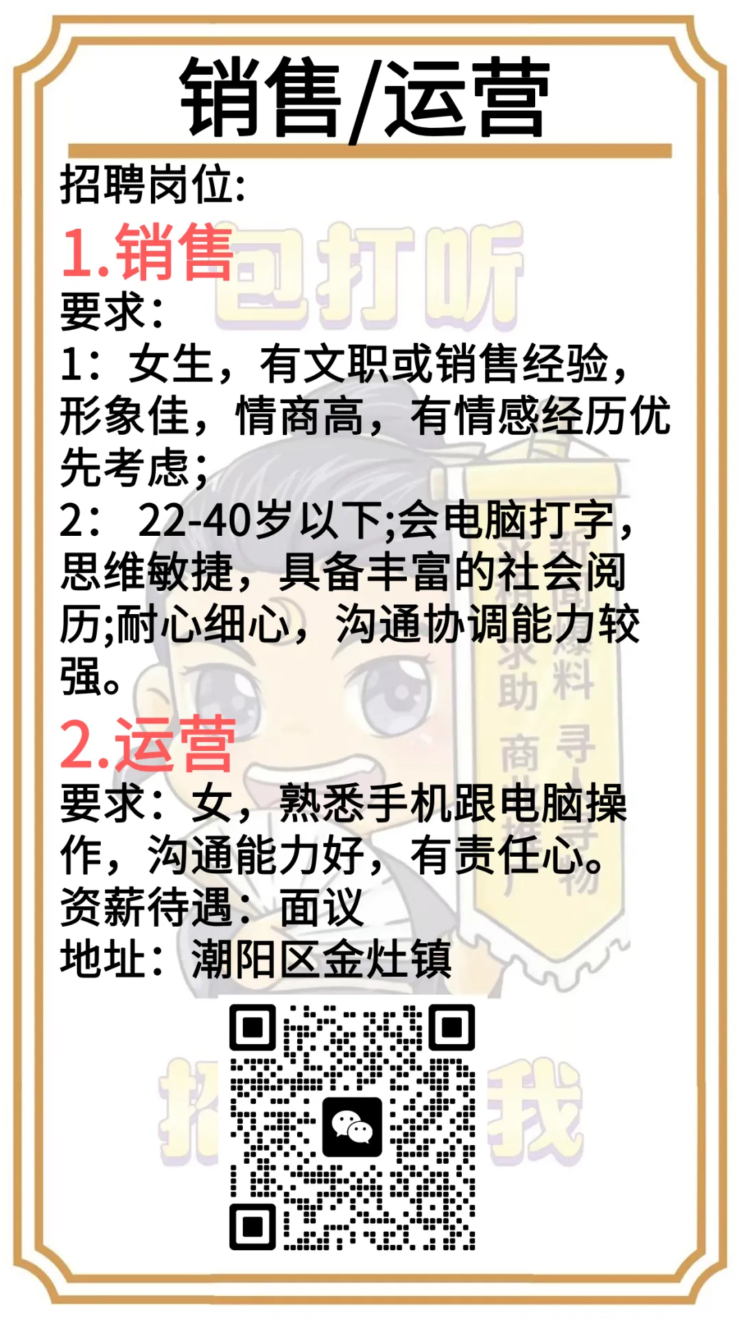 【宁化招聘】0123期||品检,操作员,分拣员,保洁,导购,普工,业务员,收银,客服,店员,老师,销售,司机,阿姨,营业员