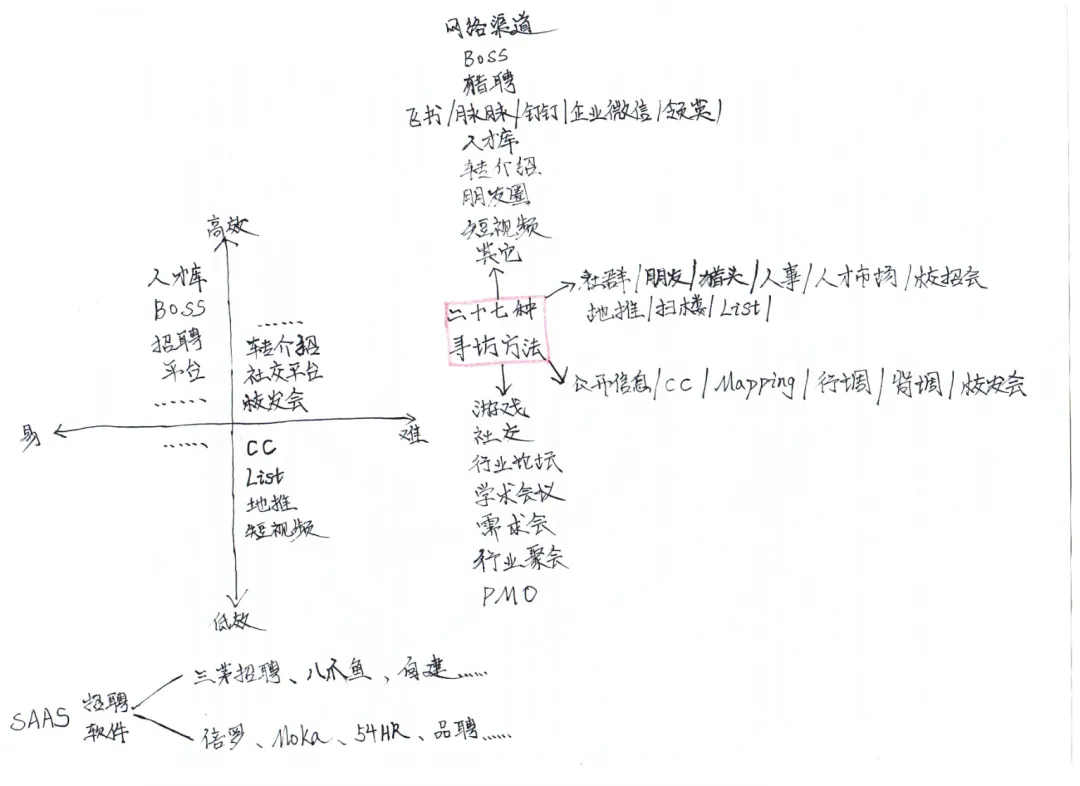 无论你是甲方,负责招聘工作的,还是乙方,做专职猎头的,寻访方式,找人渠道,到最后,都是殊途同归,无非就是线上、线下、公域、私域的区别,甲方招聘和专职猎头的真正区别在于:投入。