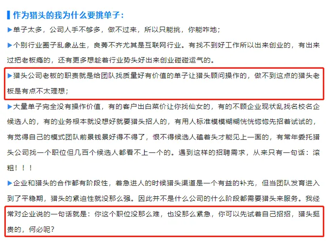 回避困难,对于猎头公司来说,会引发整体公司层面的回避困难,会形成这样的恶性循环——顾问的交付能力较低,所以为了保证业绩,公司只能去BD那些简单的单子;而这些简单的单子又不能促进顾问寻访能力的提升,所以就更依赖于单子的易操作性。这样久而久之,公司整体就陷入到了低效的泥潭当中。