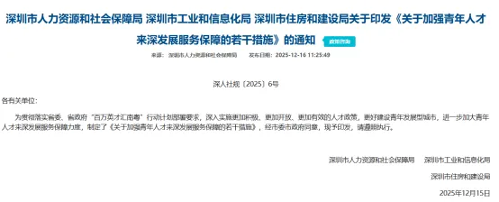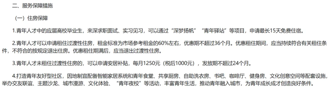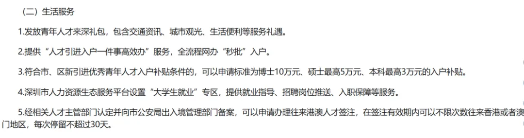 为到深圳的青年人才提供落户便利、安居补贴、就业服务以及港澳人才签注便利等。