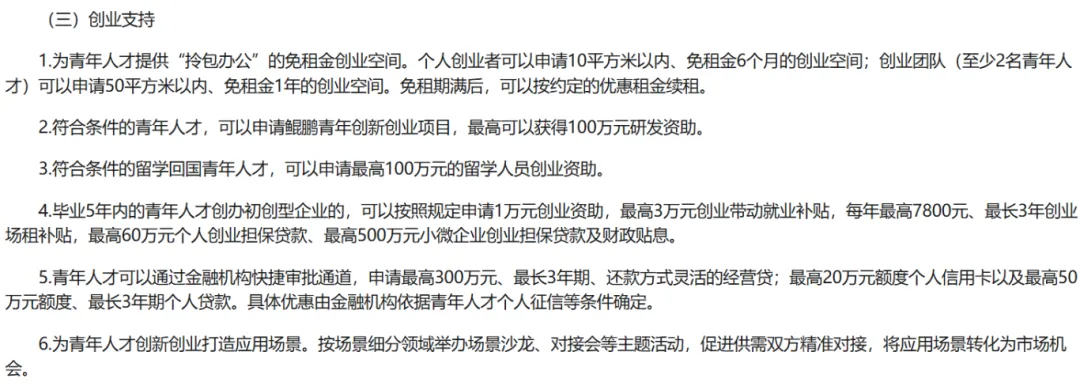 ·研发资助:经认定青年人才,可以申请鲲鹏青年创新创业项目获研发资助,资助最多达100万;