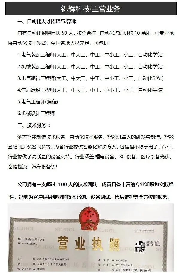 1、要求:男性,20-35周岁,中专及以上学历半年以上自动化工作经验(点胶机)