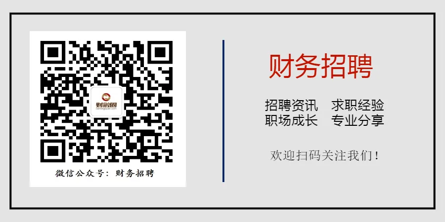财务招聘推荐大家关注更多财融行业优质公众号,获得更全面的行业资讯信息。