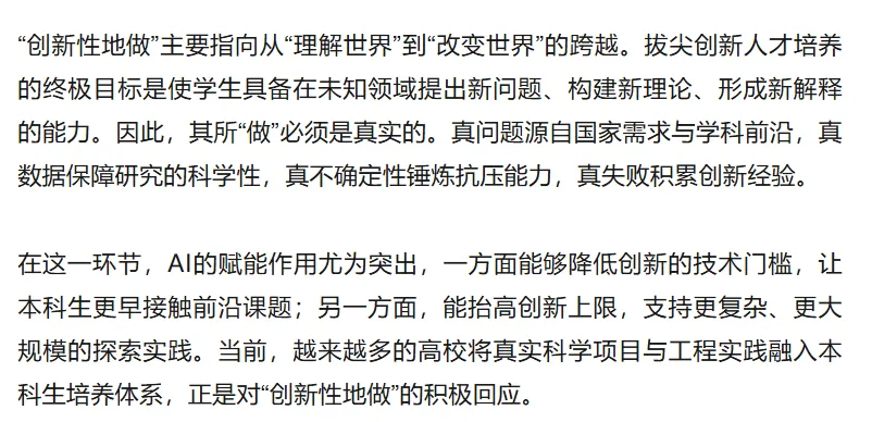 真正的AI赋能是借助技术,打破传统教育的时空限制与思维定式,系统重构教学模式、课程体系与评价机制,让教育更好地服务于创新能力培养。