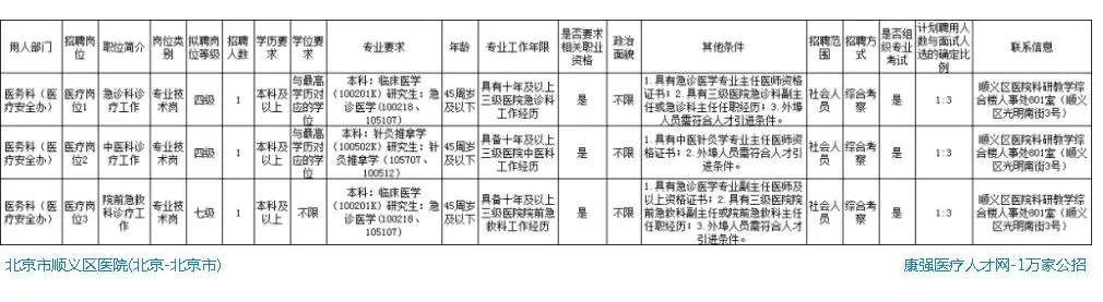 北京市顺义区医院招聘3人。