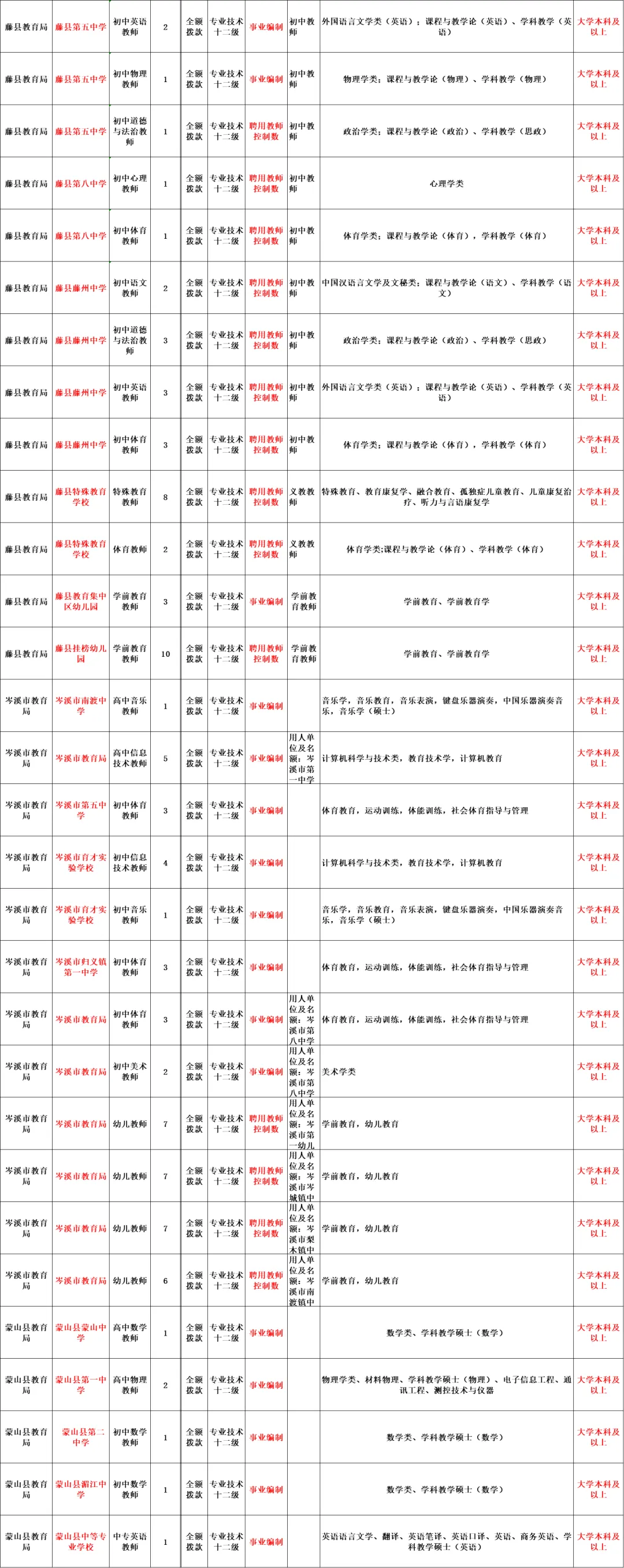 附件1:梧州市2026年面向社会公开考试招聘中小学(幼儿园)教师岗位计划表.xls