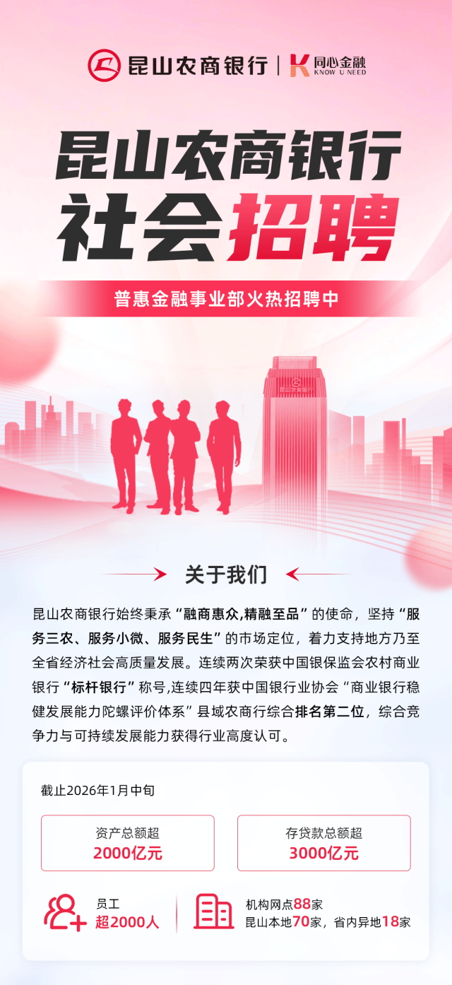 >金猎头 | 昆山农商银行普惠金融事业部火热招聘中