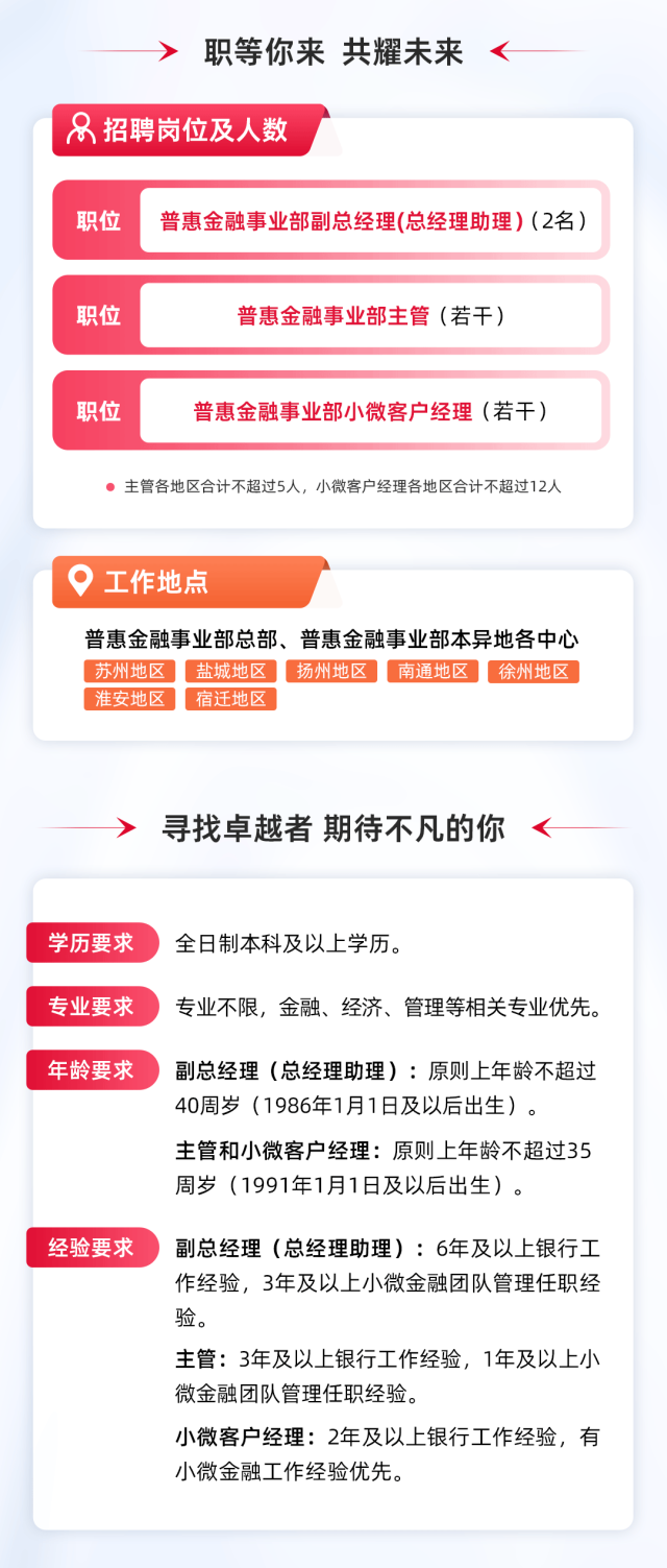 金猎头 | 昆山农商银行普惠金融事业部火热招聘中