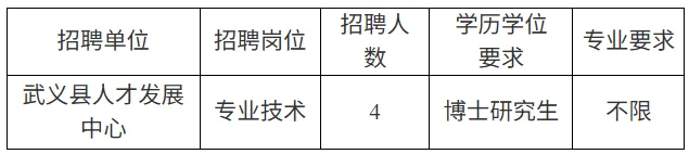 为进一步加强武义县人才队伍建设,根据《关于进一步做好事业单位公开招聘工作的通知》《浙江省事业单位公开招聘人员暂行办法》等规定和要求,经研究决定引进博士研究生4名,现将有关事项公告如下: