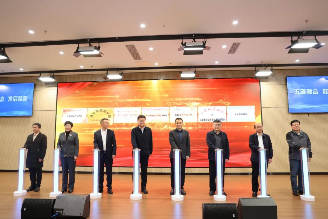 杨楠院长作为合作院校代表,与省大数据数字经济处处长孙海运、任城区委书记张令华等共同为产业学院、实训基地揭牌。