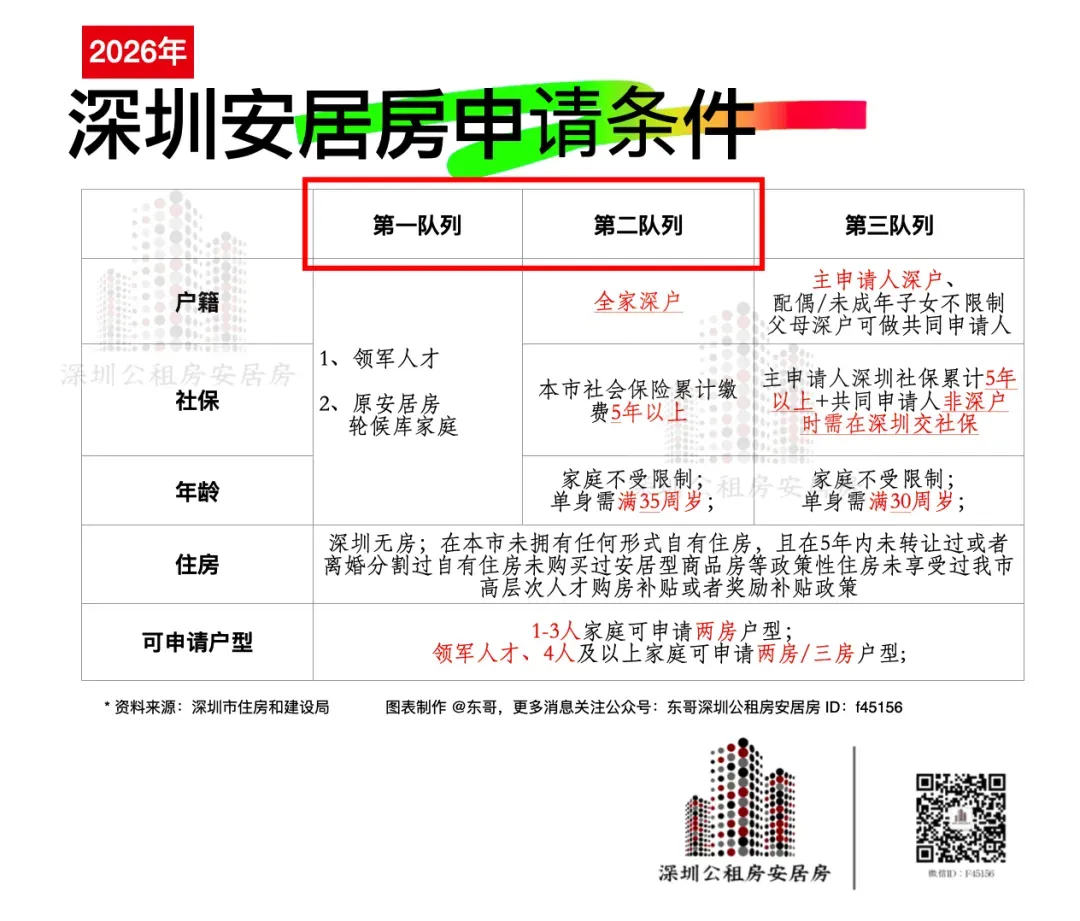 开始面向深圳安居房轮候库外符合条件的家庭/单身个人配售,目前只开放第一、第二队列: