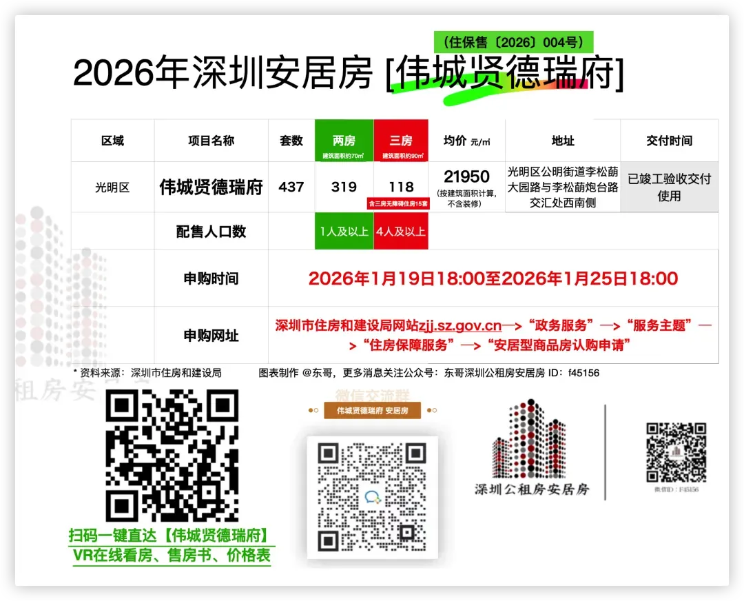 1、深圳市住房保障署安居型商品房配售通告(住保售〔2026〕005号)https://zjj.sz.gov.cn/ztfw/zfbz/tzgg2017/content/post_12606798.html