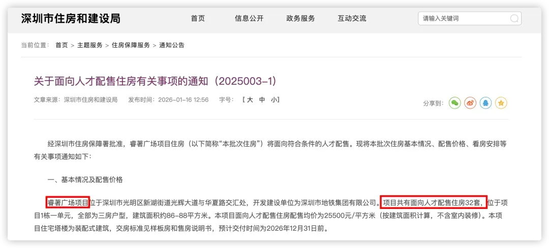 2、关于安居型商品房配售有关事项的通知(2026004-1)https://zjj.sz.gov.cn/ztfw/zfbz/tzgg2017/content/post_12606767.html
