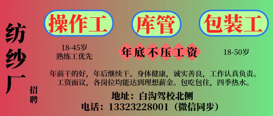 要求:20-40周岁 白沟附近或本地人 食宿自理 最好工作经验的优先(没有过任何工作经验的勿扰)(短期工勿扰)