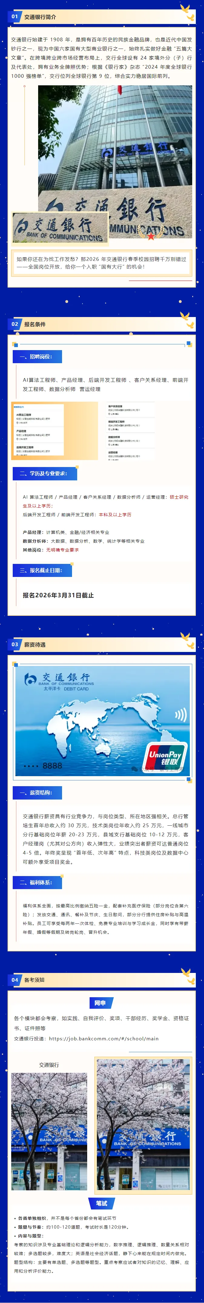 >招聘信息 || 交通银行2026春招全面开启