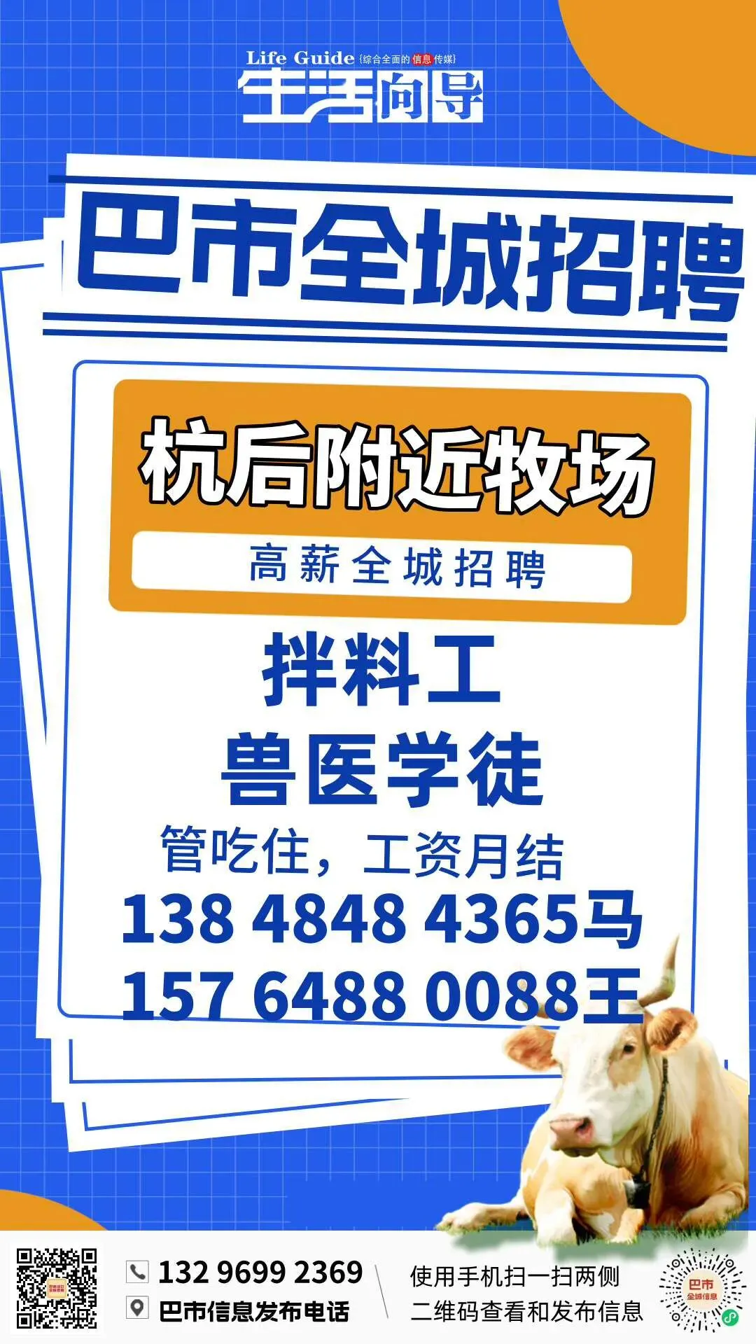 2512-1-y关键字:杭后牧场包吃住招聘拌料工和兽医学徒