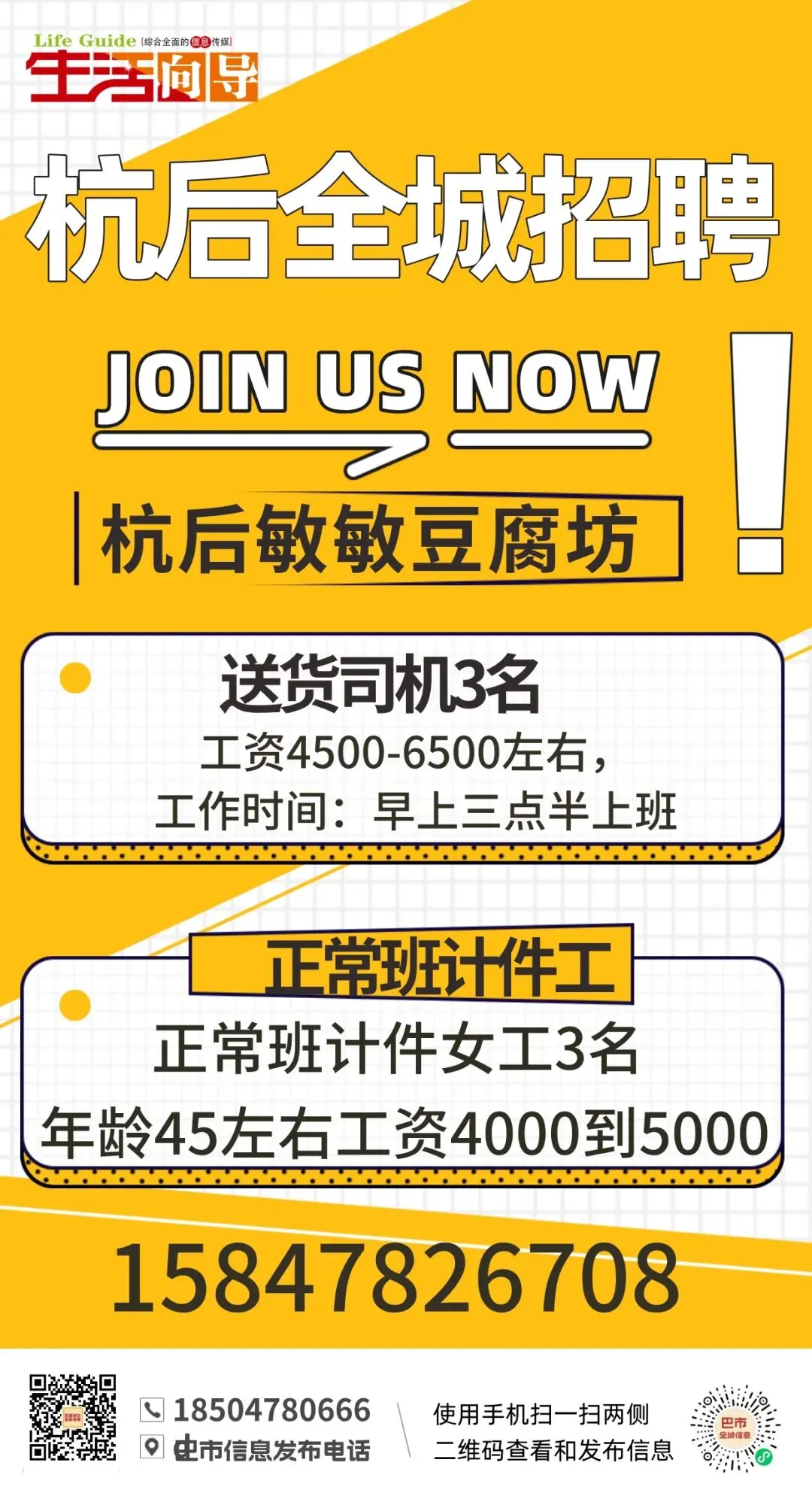 261-16/1关键字:杭后招聘送货司机和正常班计件女工