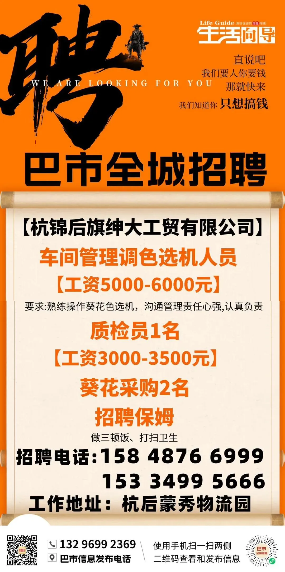 杭后+后旗+中旗招聘:杭锦后旗和乌拉特后旗和中旗招聘 24小时查看,服务热线:18504780666